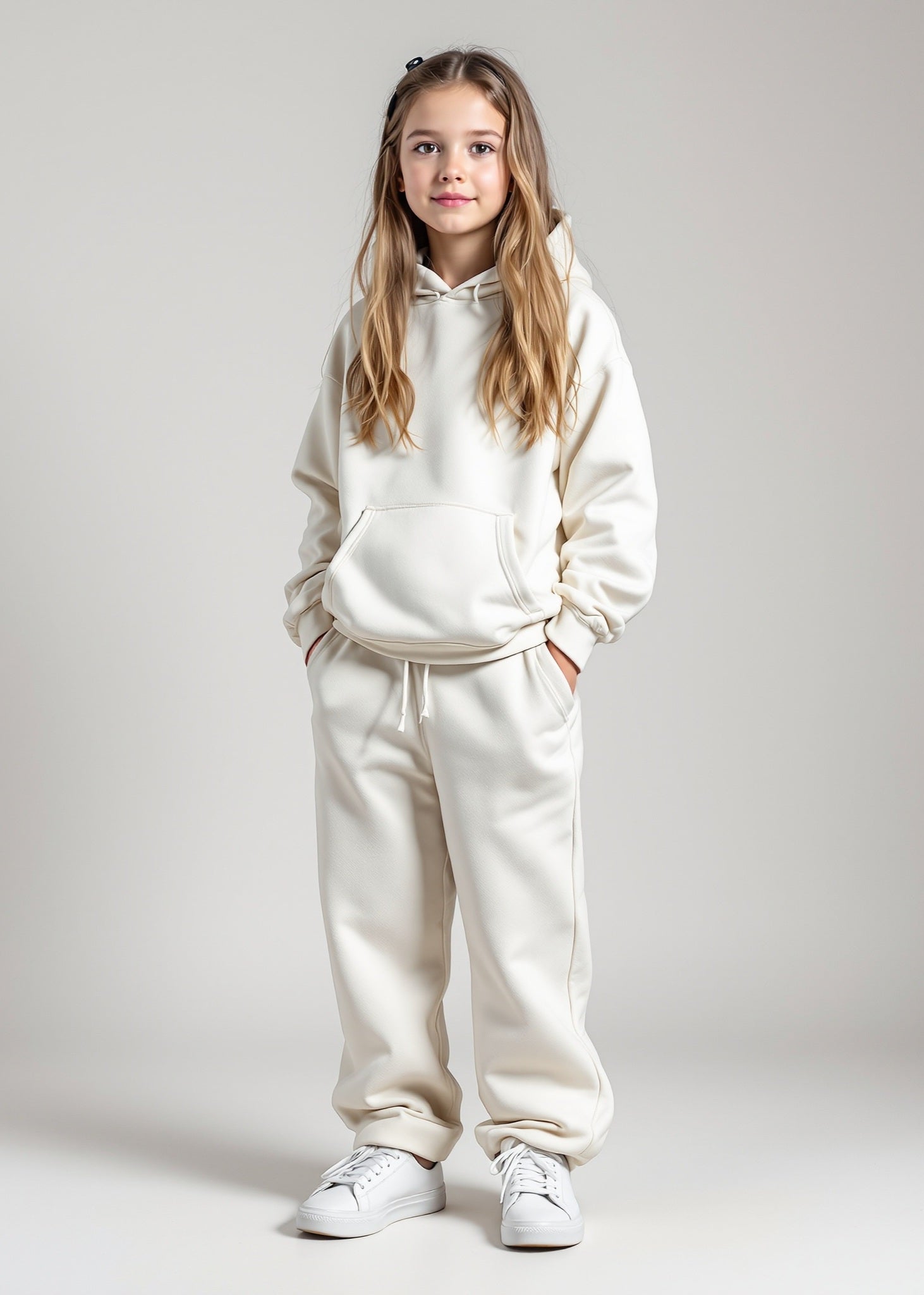 Kids hoodie and sweatpants set, soft and comfy with a relaxed fit, perfect for everyday wear.